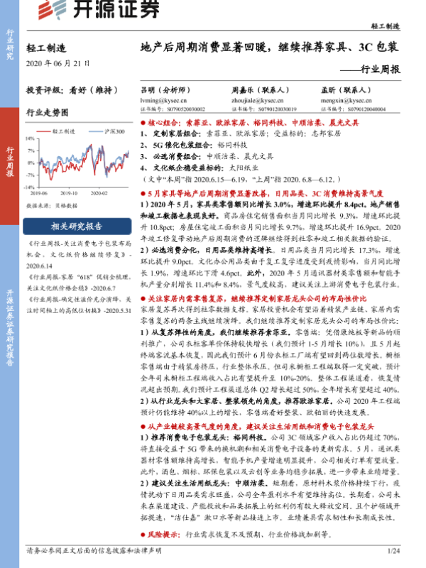 【开源证券】【20200621】20200621-开源证券-轻工制造行业周报:地产后周期消费显著回暖,继续推荐家具、3C包装-24页