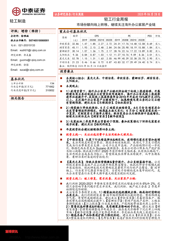 【中泰证券】【20200628】20200628-中泰证券-轻工行业周报:市场份额向线上转移,继续关注海外办公家居产业链-17页