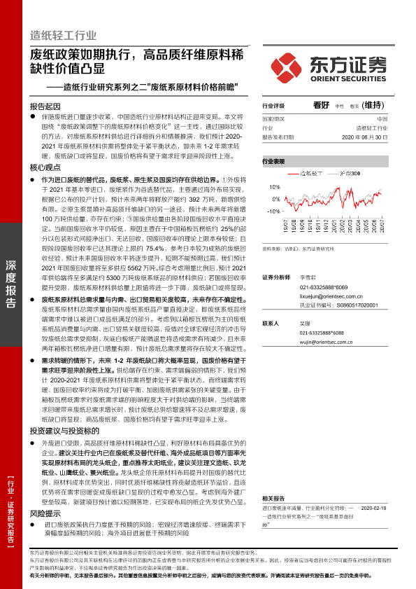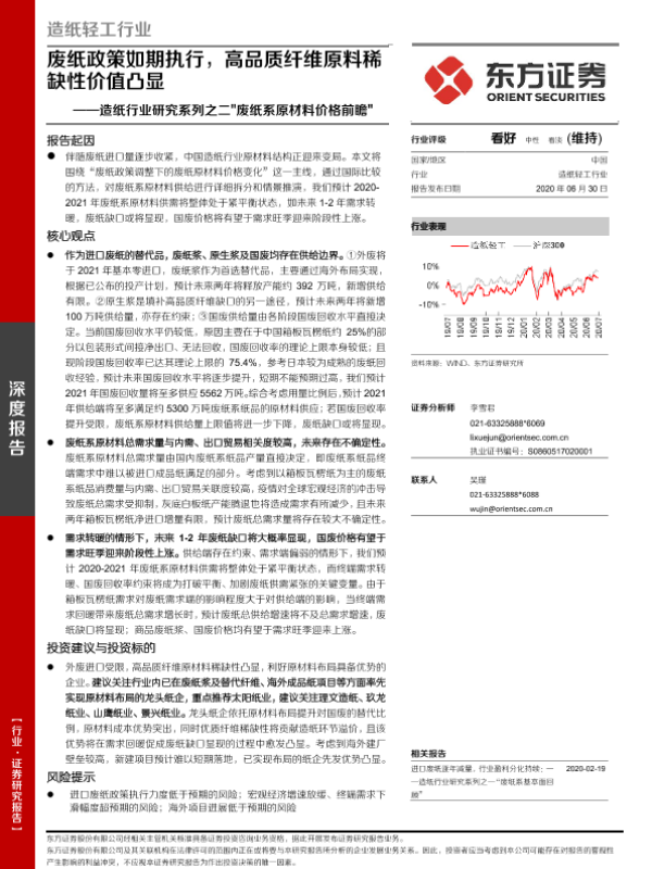 【东方证券】【20200630】20200630-东方证券-造纸行业研究系列之二'废纸系原材料价格前瞻' 废纸政策如期执行,高品质纤维原料稀缺性价值凸显-51页