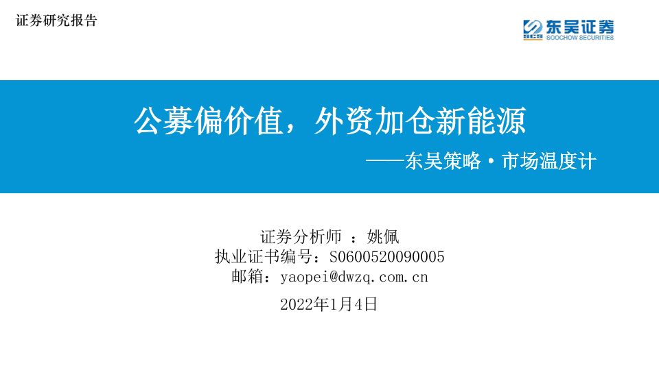【东吴证券】【20220104】策略·市场温度计:公募偏价值,外资加仓新能源-26页