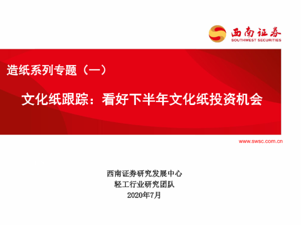 【西南证券】【202007】20200701-西南证券-造纸系列专题(一):文化纸跟踪:看好下半年文化纸投资机会-19页
