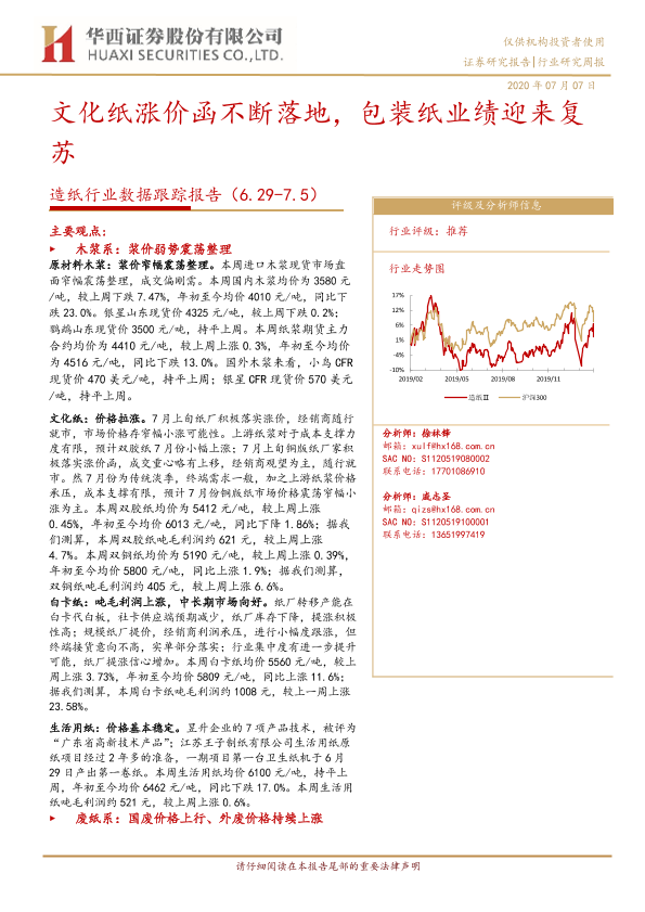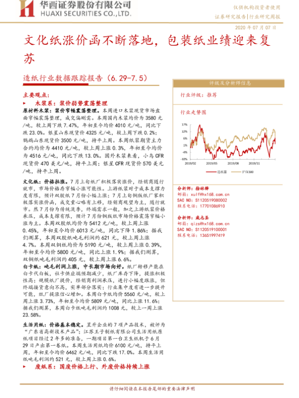 【华西证券】【20200707】20200707-华西证券-造纸行业数据跟踪报告:文化纸涨价函不断落地,包装纸业绩迎来复苏-11页