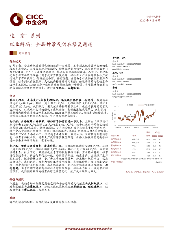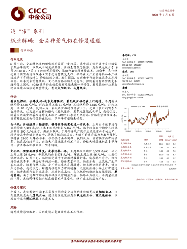 【中金公司】【20200706】追“宗”系列:纸业解码:全品种景气仍在修复通道-7页