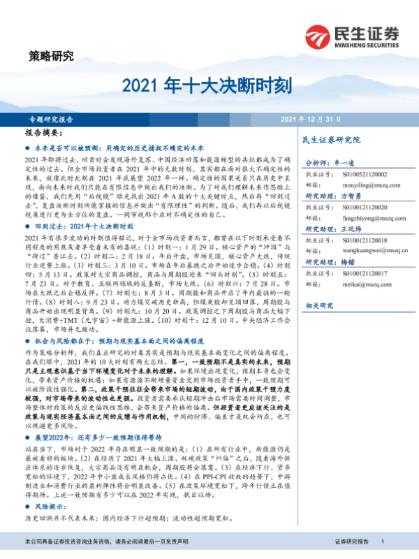 【民生证券】【20211231】策略研究:2021年十大决断时刻-28页