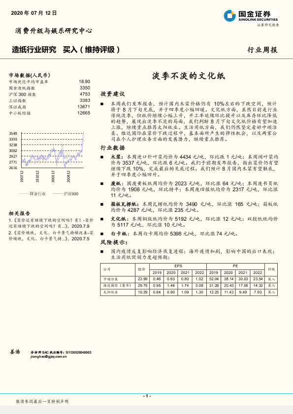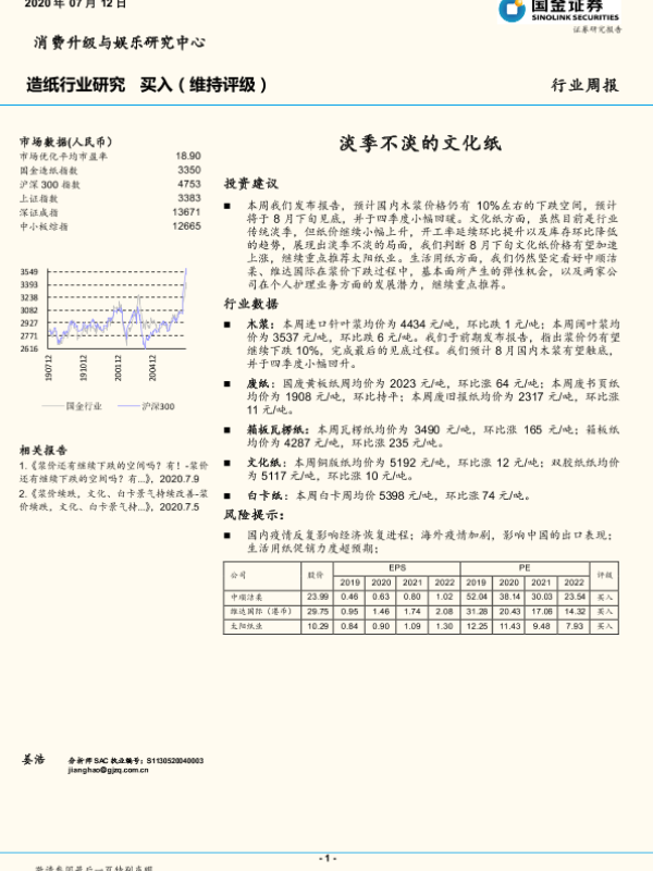 【国金证券】【20200712】20200712-国金证券-造纸行业研究:淡季不淡的文化纸-3页