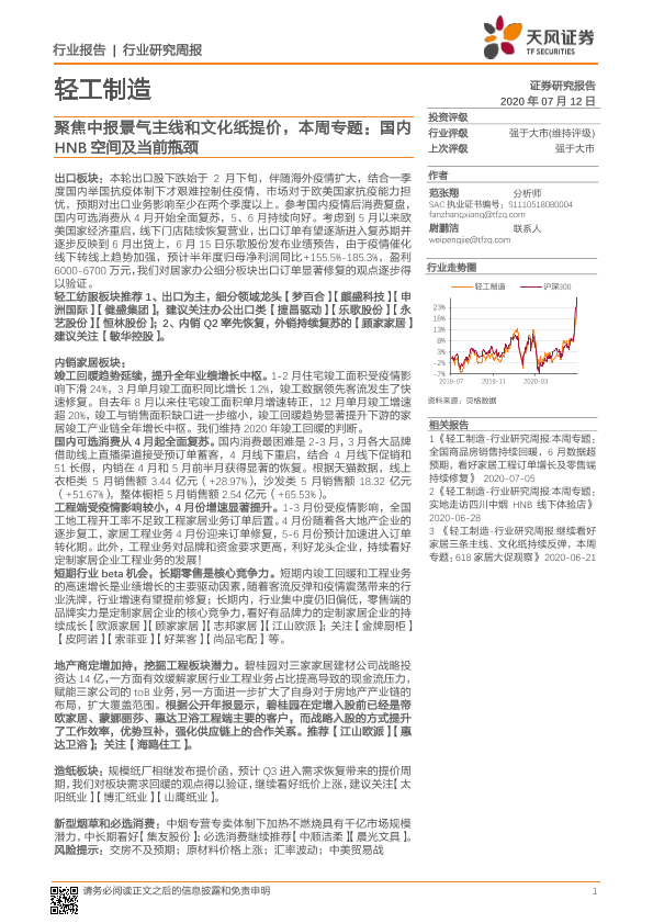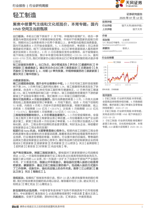 【天风证券】【20200712】20200712-天风证券-轻工制造行业研究周报:聚焦中报景气主线和文化纸提价,本周专题:国内HNB空间及当前瓶颈-21页