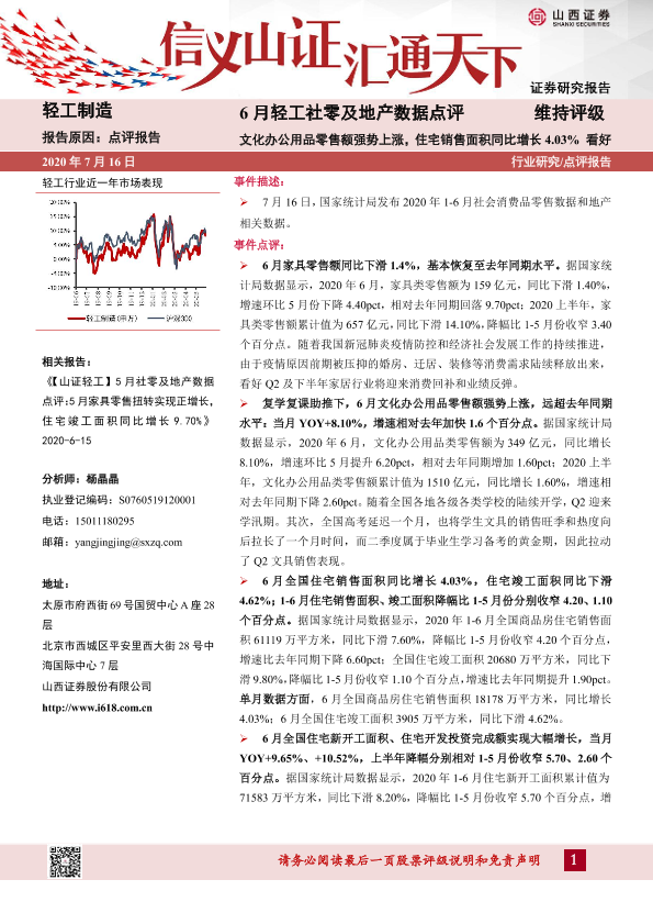 【山西证券】【20200716】6月轻工社零及地产数据点评:文化办公用品零售额强势上涨,住宅销售面积同比增长4.03%-7页
