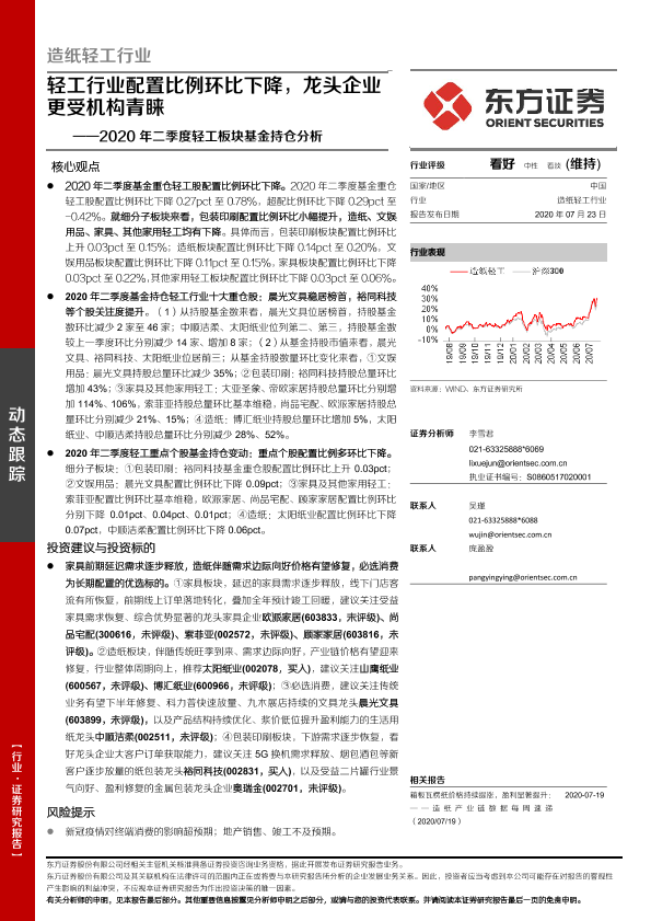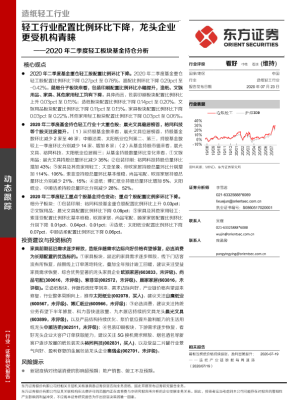 【东方证券】【20200723】2020年二季度轻工板块基金持仓分析:轻工行业配置比例环比下降,龙头企业更受机构青睐-11页