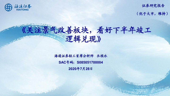 【海通证券】【20200728】关注景气改善板块,看好下半年竣工逻辑兑现-45页