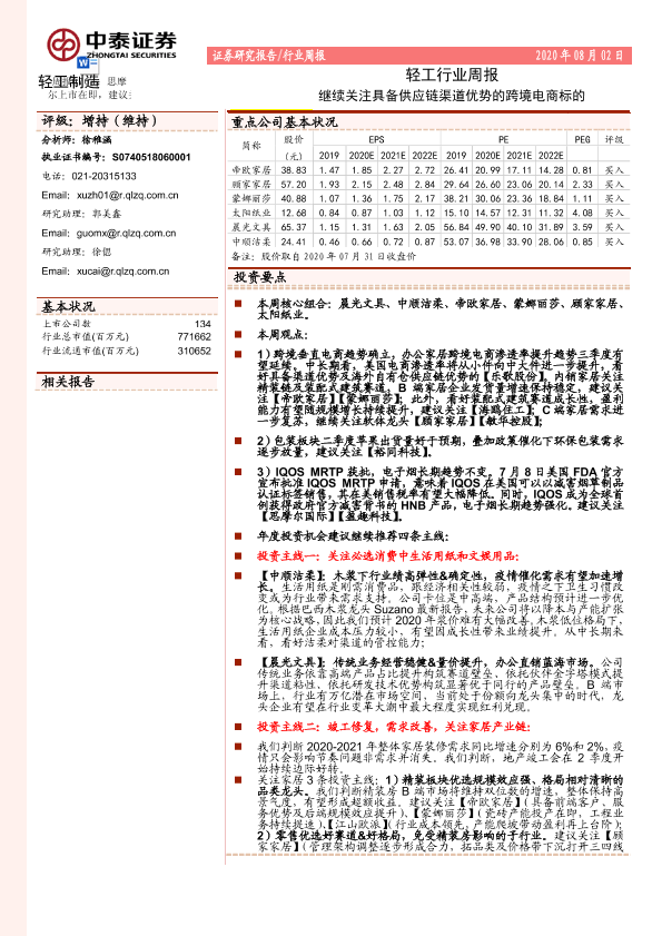 【中泰证券】【20200802】20200802-中泰证券-轻工行业周报:继续关注具备供应链渠道优势的跨境电商标的-16页