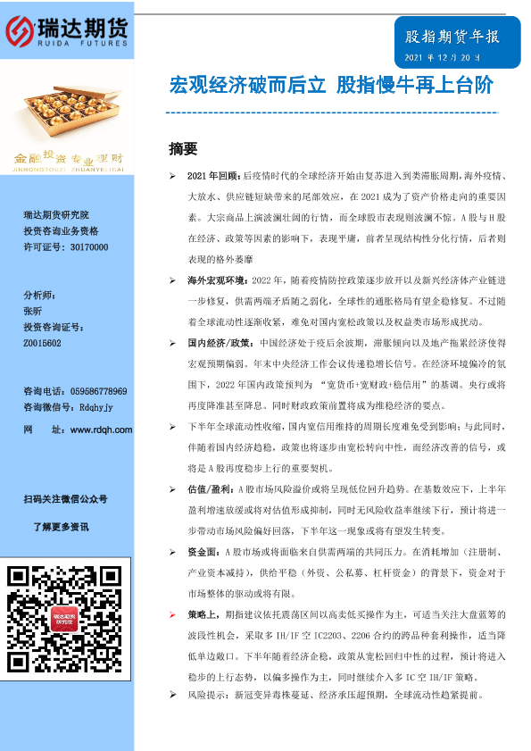【瑞达期货】【20211220】股指期货年报:宏观经济破而后立,股指慢牛再上台阶-41页