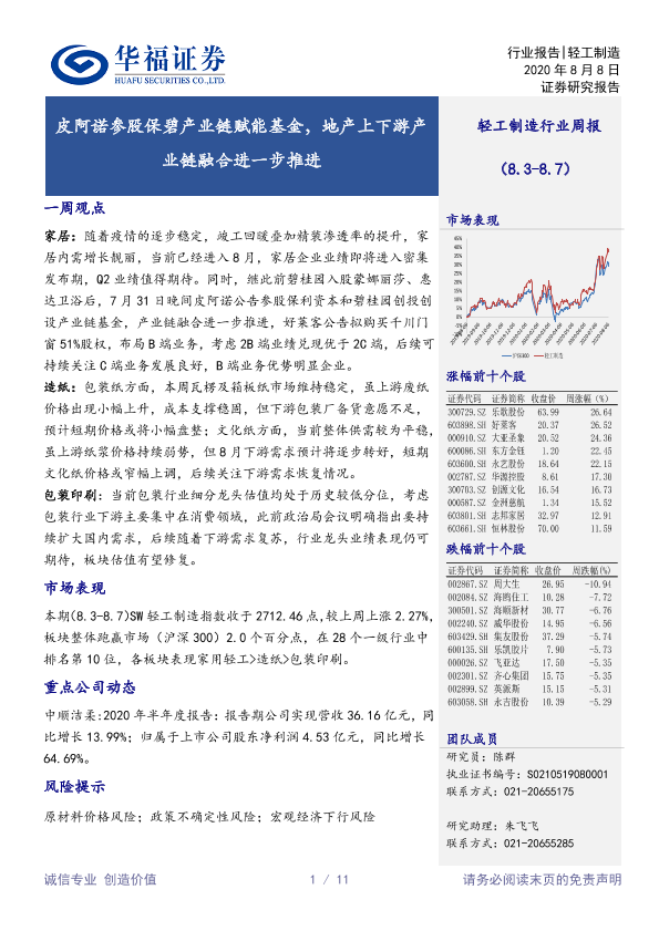 【华福证券】【20200808】20200808-华福证券-轻工制造行业周报:皮阿诺参股保碧产业链赋能基金,地产上下游产业链融合进一步推进-11页