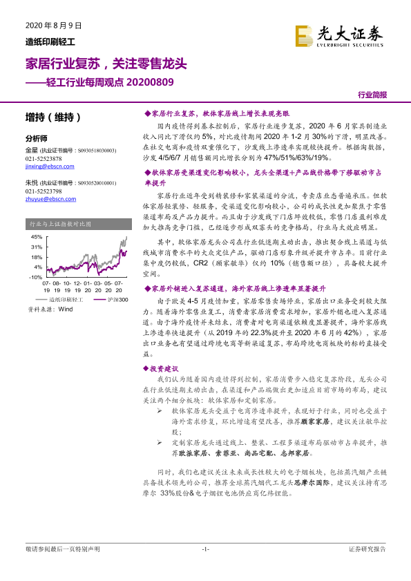 【光大证券】【20200809】20200809-光大证券-轻工行业每周观点:家居行业复苏,关注零售龙头-8页