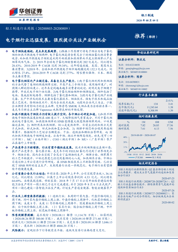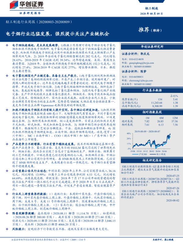【华创证券】【20200809】20200809-华创证券-轻工制造行业周报:电子烟行业迅猛发展,强烈提示关注产业链机会-14页