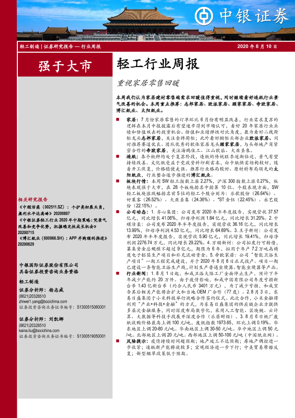 【中银证券】【20200810】20200810-中银证券-轻工行业周报:重视家居零售回暖-23页