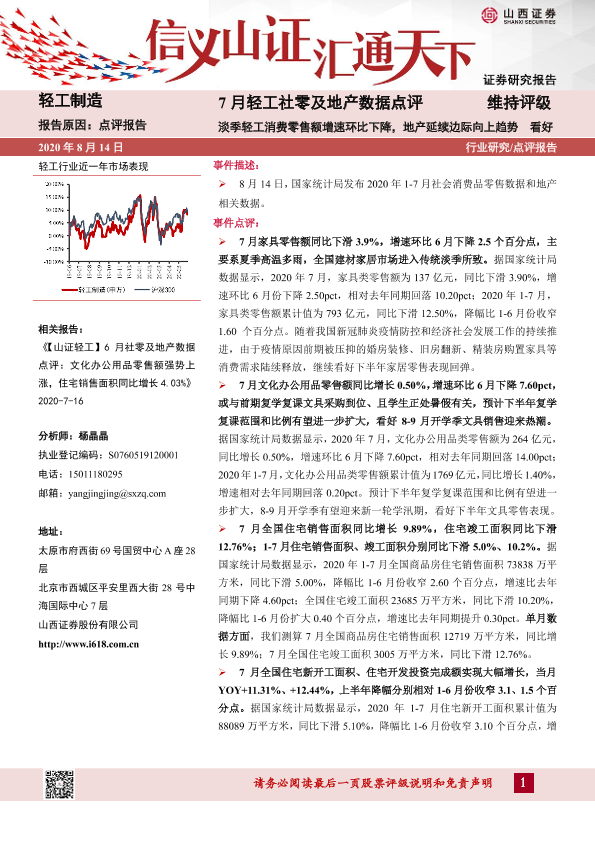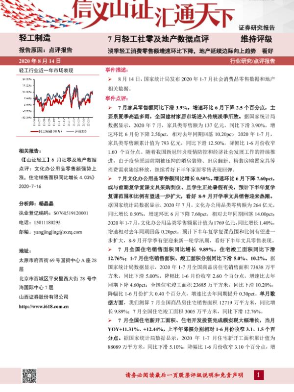 【山西证券】【20200814】20200814-山西证券-7月轻工社零及地产数据点评:淡季轻工消费零售额增速环比下降,地产延续边际向上趋势-6页