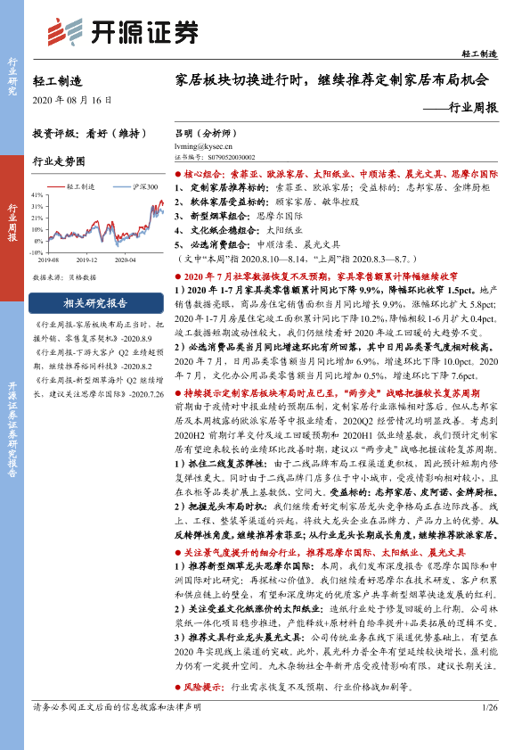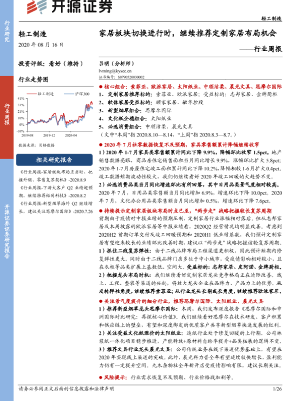 【开源证券】【20200816】20200816-开源证券-轻工制造行业周报:家居板块切换进行时,继续推荐定制家居布局机会-26页