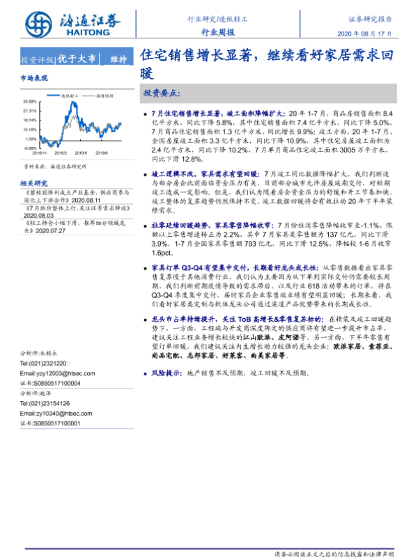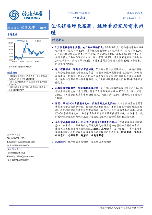 【海通证券】【20200817】20200817-海通证券-造纸轻工行业周报:住宅销售增长显著,继续看好家居需求回暖-5页