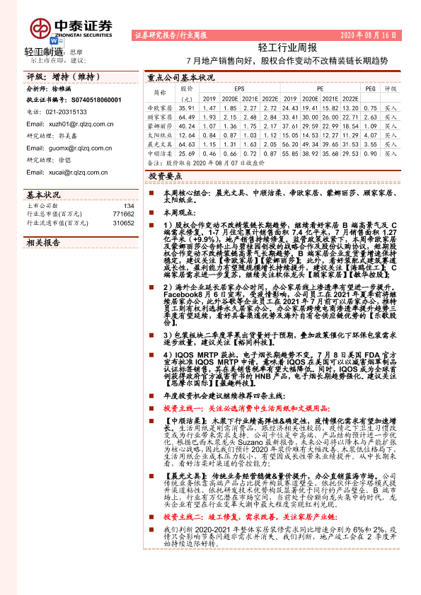 【中泰证券】【20200816】20200816-中泰证券-轻工行业周报:7月地产销售向好,股权合作变动不改精装链长期趋势-16页