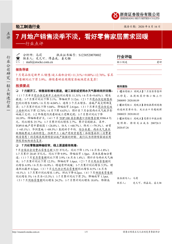 【浙商证券】【20200816】轻工制造行业行业点评:7月地产销售淡季不淡,看好零售家居需求回暖-5页