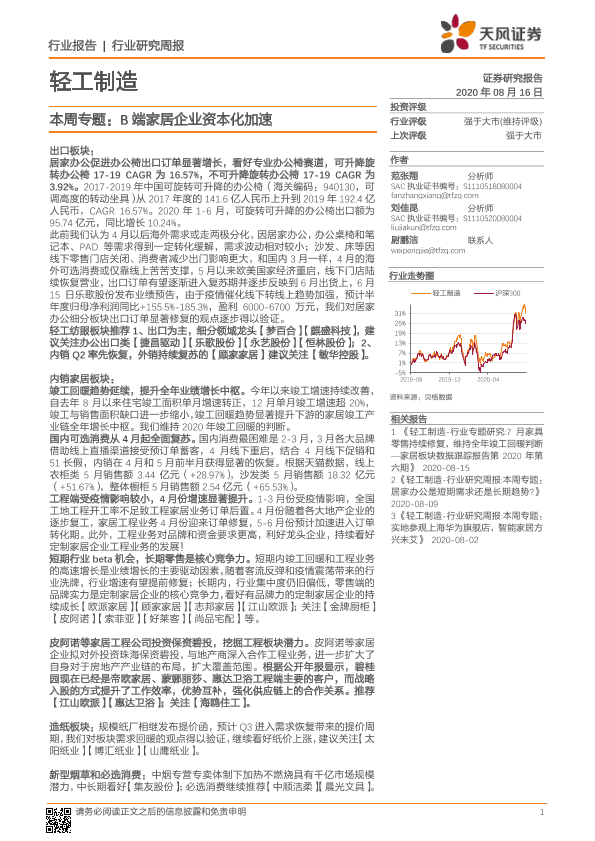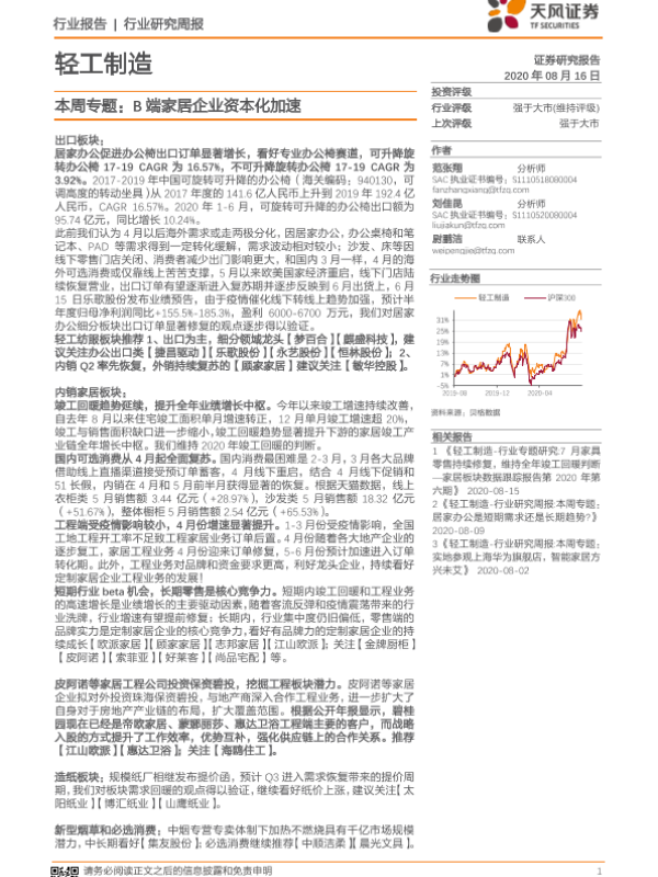 【天风证券】【20200816】轻工制造本周专题:B端家居企业资本化加速-15页
