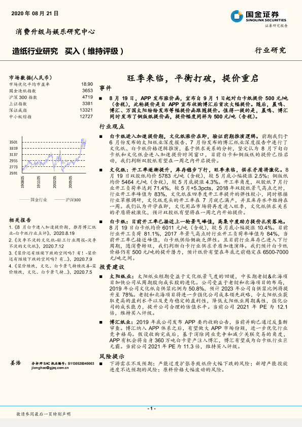 【国金证券】【20200821】20200821-国金证券-造纸行业研究:旺季来临,平衡打破,提价重启-14页