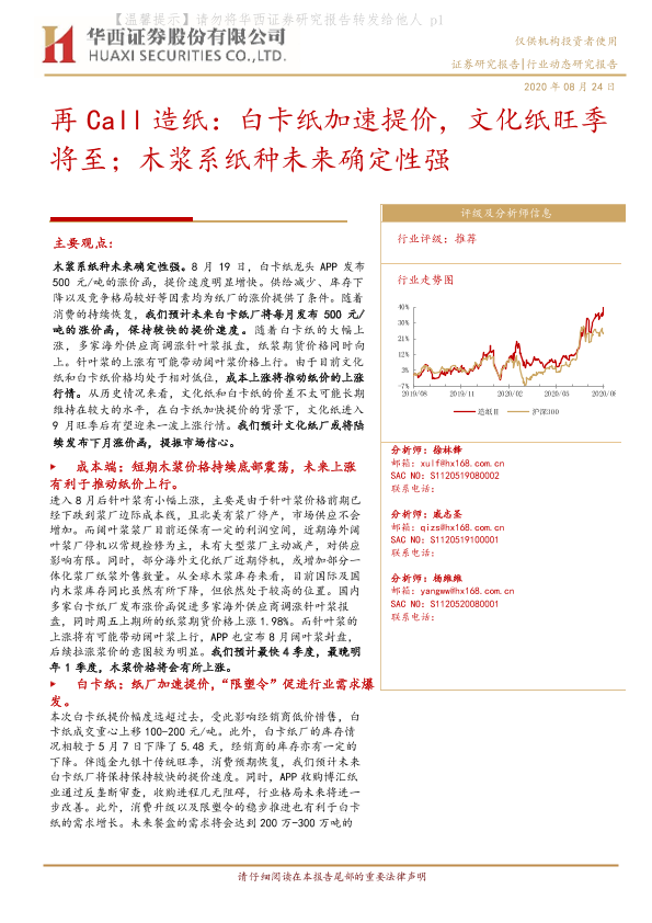 【华西证券】【20200824】再Call造纸:白卡纸加速提价,文化纸旺季将至;木浆系纸种未来确定性强-13页