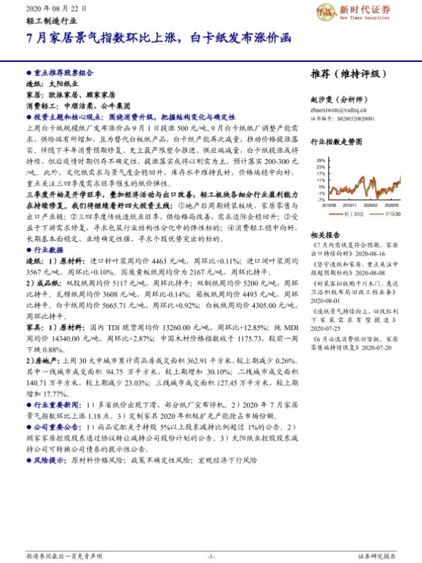 【新时代证券】【20200822】轻工制造行业:7月家居景气指数环比上涨,白卡纸发布涨价函-21页