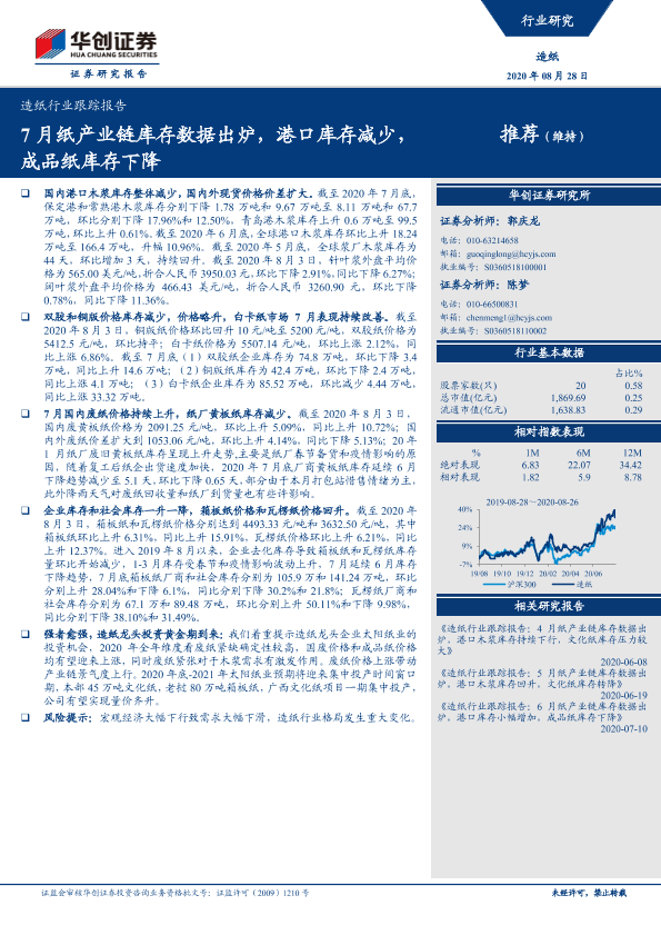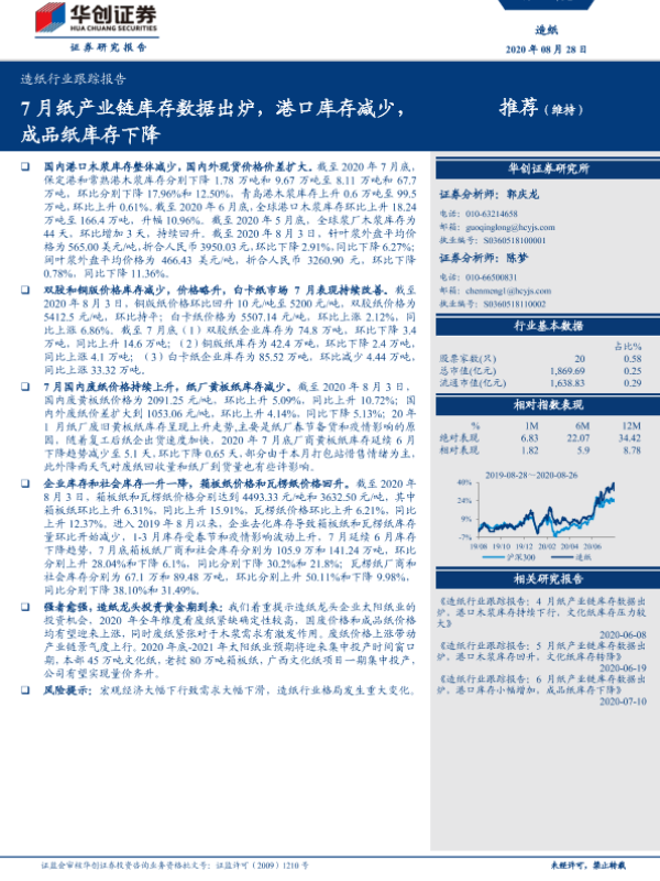 【华创证券】【20200828】20200828-华创证券-造纸行业跟踪报告:7月纸产业链库存数据出炉,港口库存减少,成品纸库存下降-11页