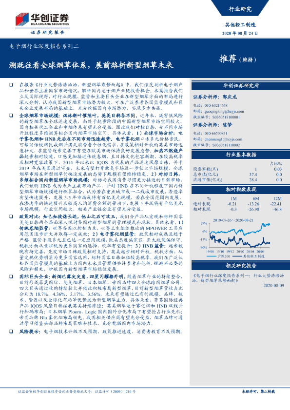 【华创证券】【20200824】20200824-华创证券-电子烟行业深度报告系列二:溯既往看全球烟草体系,展前路析新型烟草未来-38页