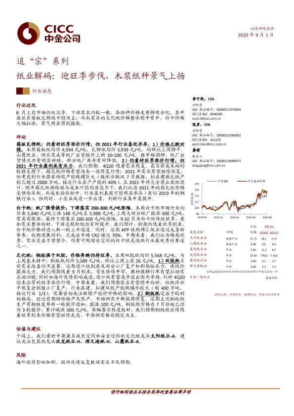 【中金公司】【20200901】追“宗”系列:纸业解码:迎旺季步伐,木浆纸种景气上扬-7页