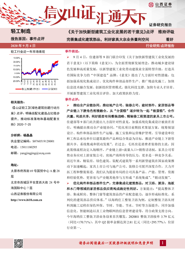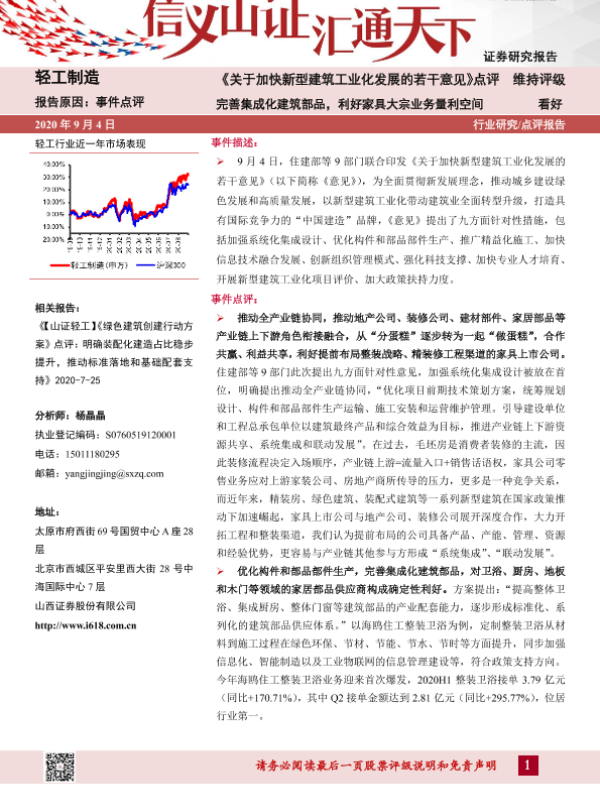 【山西证券】【20200904】《关于加快新型建筑工业化发展的若干意见》点评:完善集成化建筑部品,利好家具大宗业务量利空间-6页
