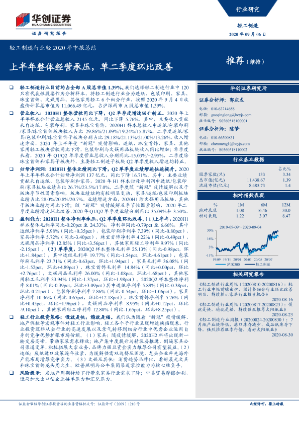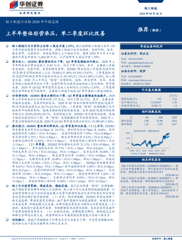 【华创证券】【20200906】轻工制造行业轻2020年中报总结:上半年整体经营承压,单二季度环比改善-19页