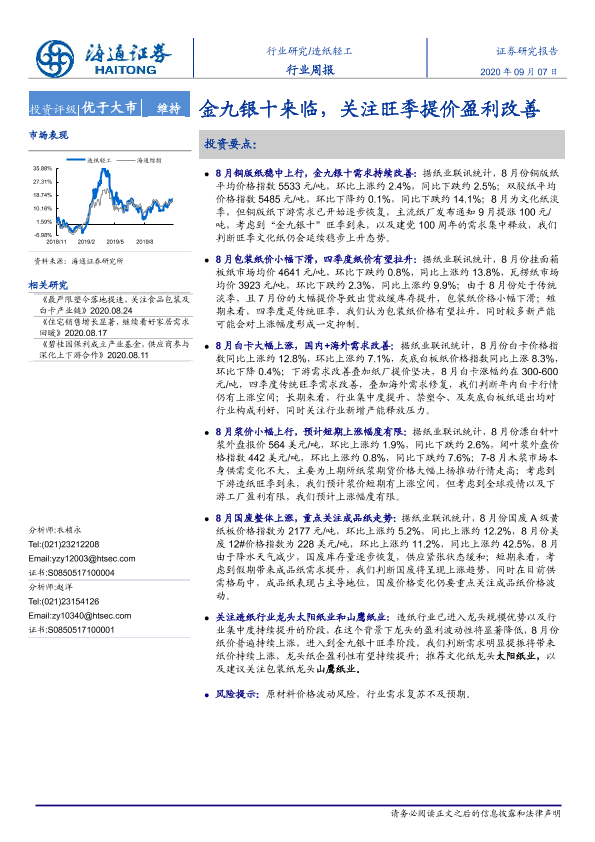 【海通证券】【20200907】20200907-海通证券-造纸轻工行业周报:金九银十来临,关注旺季提价盈利改善-5页