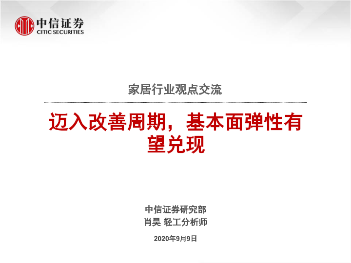 【中信证券】【20200909】20200909-中信证券-家居行业观点交流:迈入改善周期,基本面弹性有望兑现-12页
