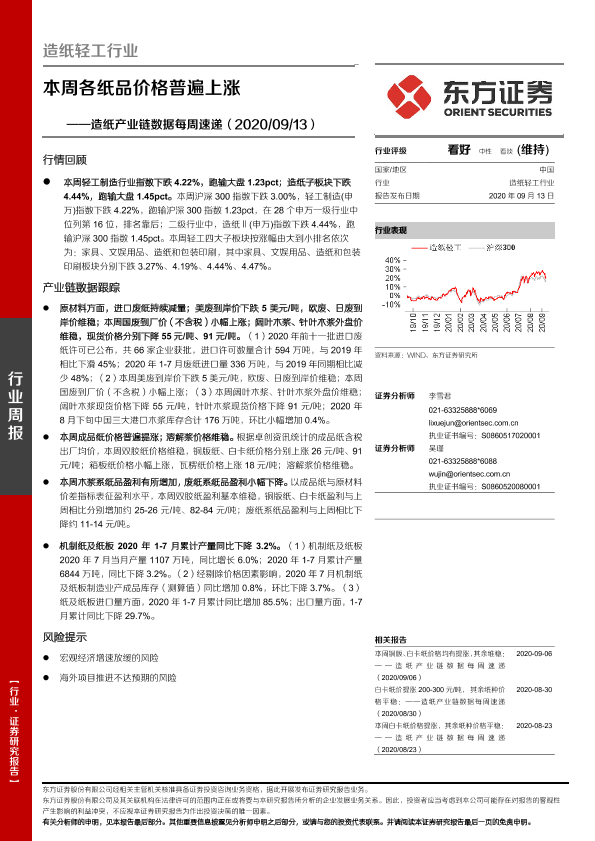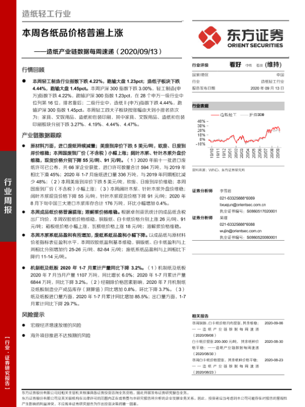 【东方证券】【20200913】20200913-东方证券-造纸产业链数据每周速递:本周各纸品价格普遍上涨-15页