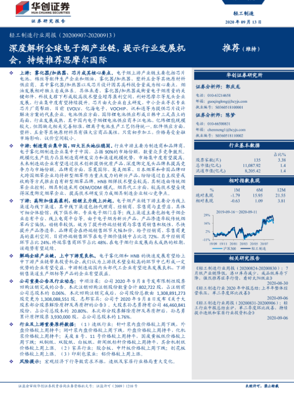 【华创证券】【20200913】20200913-华创证券-轻工制造行业周报:深度解析全球电子烟产业链,提示行业发展机会,持续推荐思摩尔国际-14页