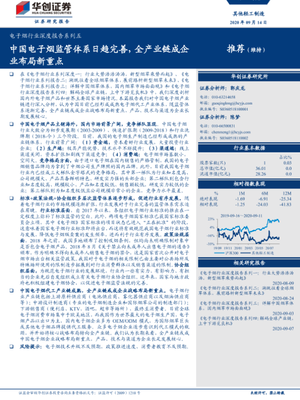 【华创证券】【20200914】20200914-华创证券-电子烟行业深度报告系列五:中国电子烟监管体系日趋完善,全产业链成企业布局新重点-27页