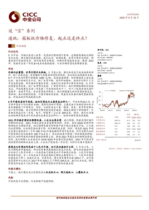 【中金公司】【20200916】追“宗”系列:造纸:箱板纸价格修复,起点还是终点?-7页