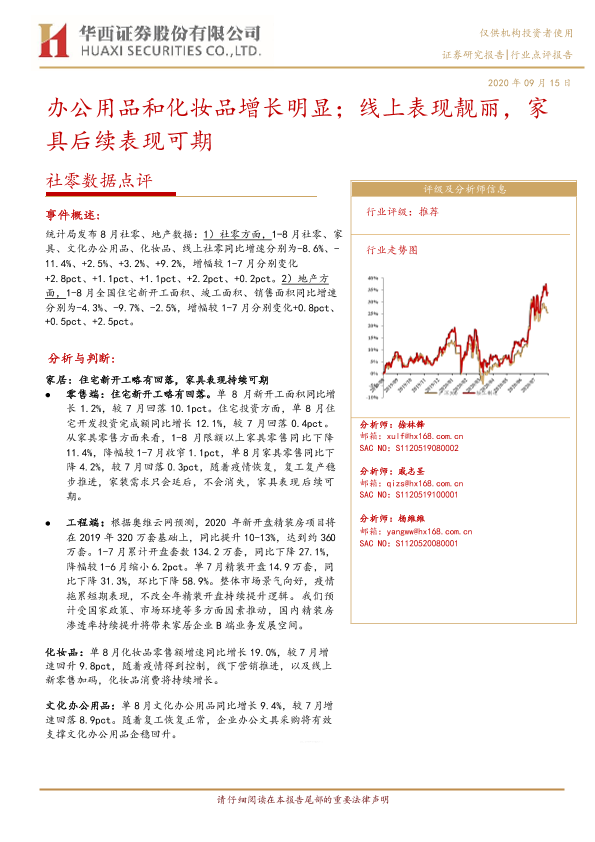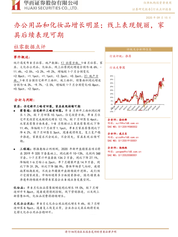 【华西证券】【20200915】社零数据点评:办公用品和化妆品增长明显;线上表现靓丽,家具后续表现可期-7页