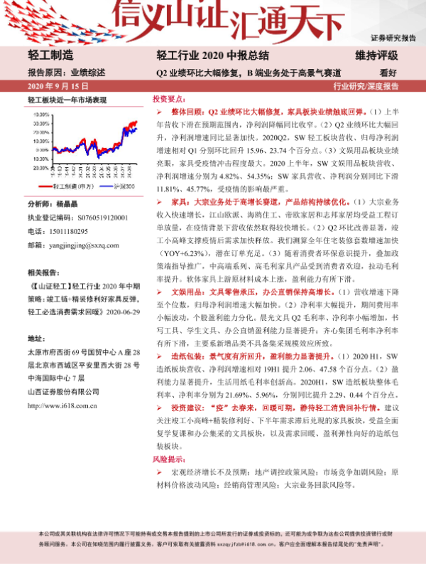 【山西证券】【20200915】轻工行业2020中报总结:Q2业绩环比大幅修复,B端业务处于高景气赛道-31页