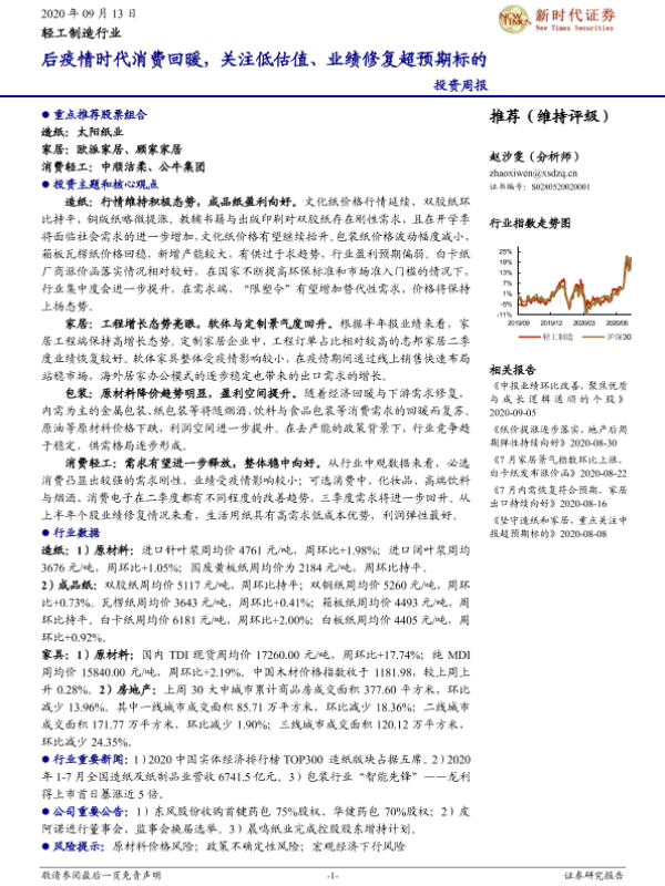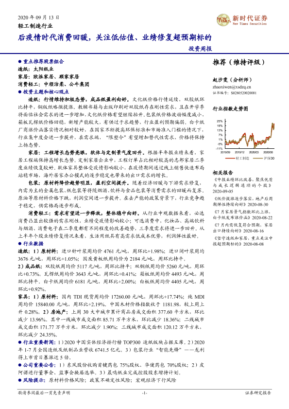 【新时代证券】【20200913】新时代证券-轻工制造行业投资周报:后疫情时代消费回暖,关注低估值、业绩修复超预期标的-22页