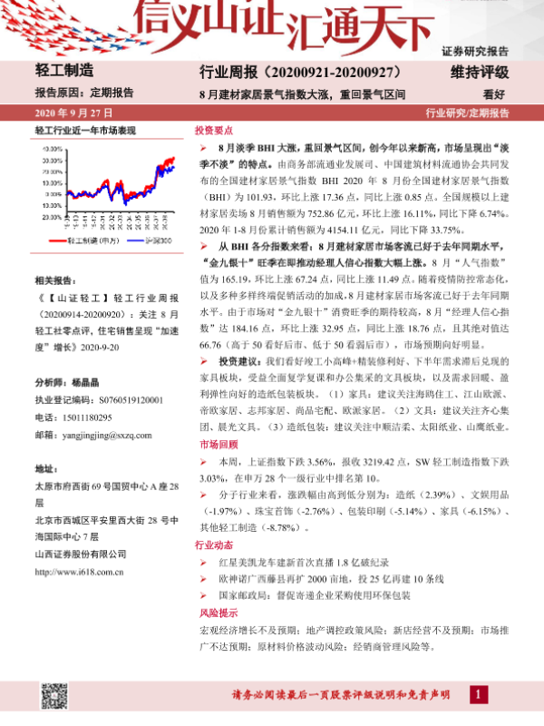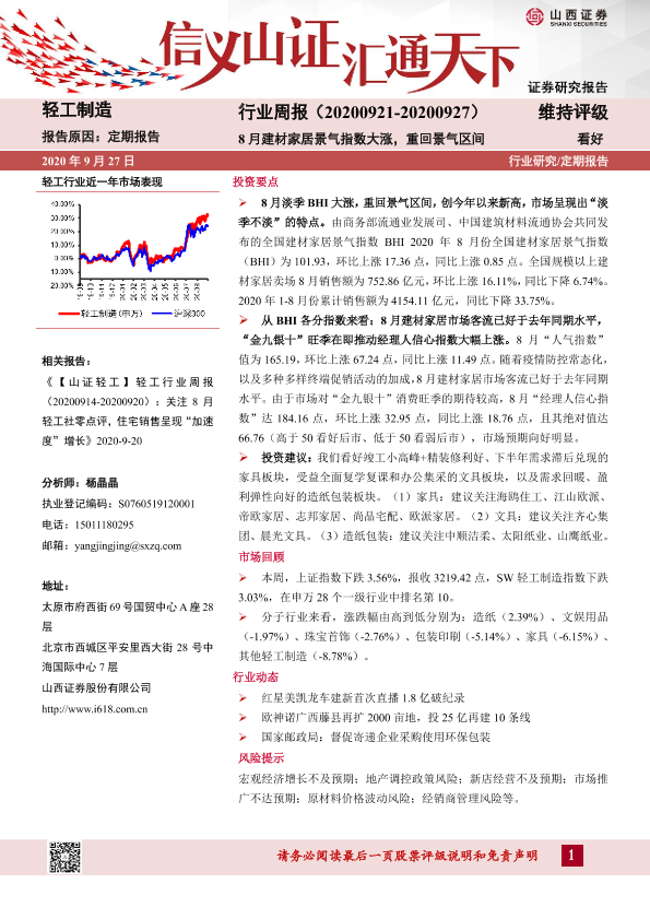 【山西证券】【20200927】20200927-山西证券-轻工制造行业周报:8月建材家居景气指数大涨,重回景气区间-14页