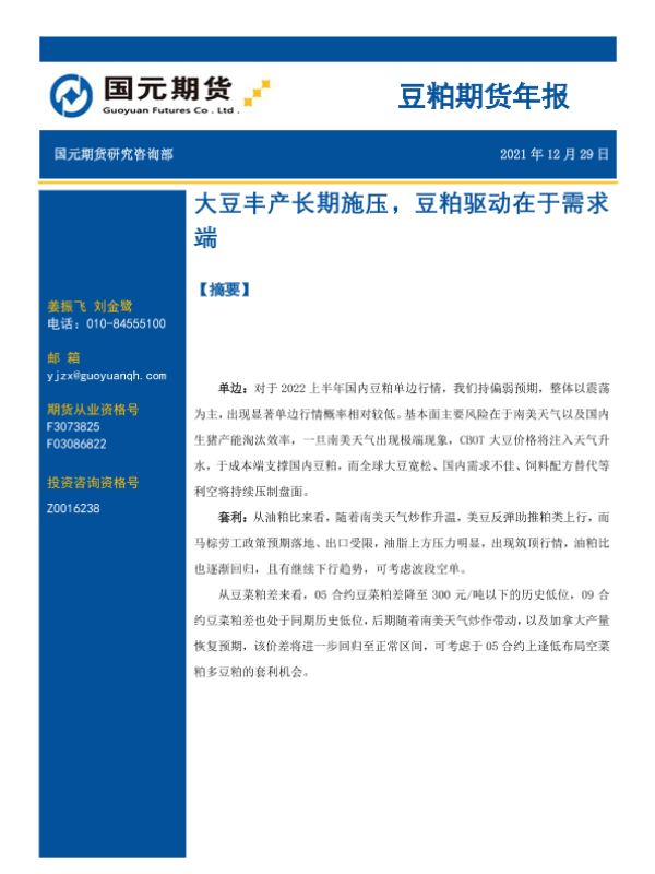 【国元期货】【20211229】豆粕期货年报:大豆丰产长期施压,豆粕驱动在于需求端-25页