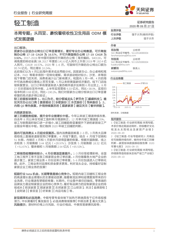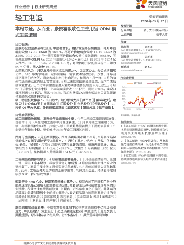 【天风证券】【20200927】轻工制造本周专题:从百亚、豪悦看吸收性卫生用品ODM模式发展逻辑-25页