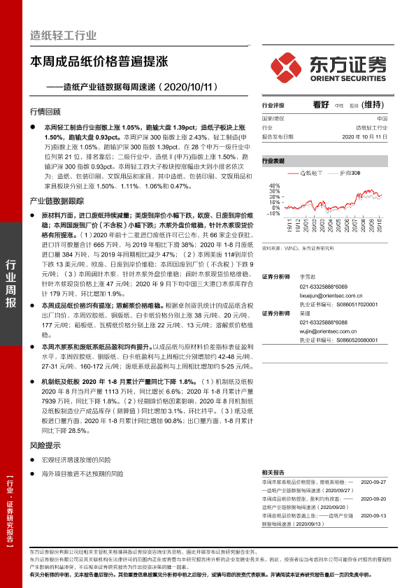 【东方证券】【20201011】20201011-东方证券-造纸轻工行业:造纸产业链数据每周速递-本周成品纸价格普遍提涨-15页