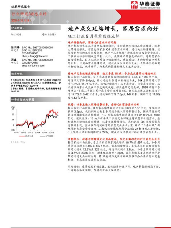 【华泰证券】【20201019】轻工行业9月社零数据点评:地产成交延续增长,家居需求向好-6页