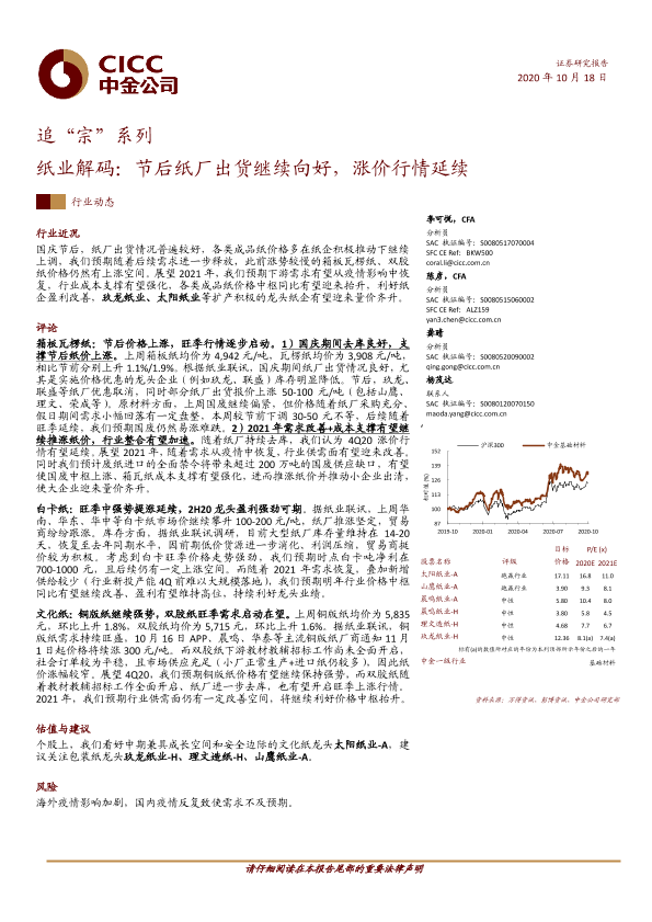 【中金公司】【20201018】追“宗”系列:纸业解码:节后纸厂出货继续向好,涨价行情延续-7页