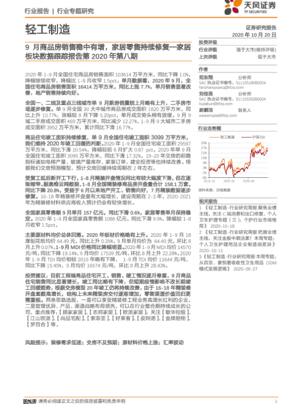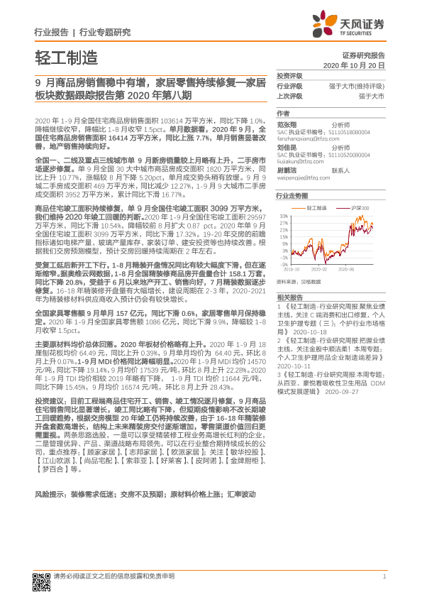 【天风证券】【20201020】20201020-天风证券-家居板块数据跟踪报告第2020年第八期:9月商品房销售稳中有增,家居零售持续修复-16页