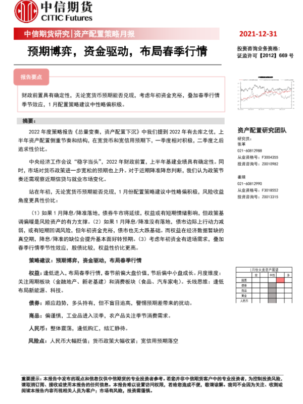 【中信期货】【20211231】资产配置策略月报:预期博弈,资金驱动,布局春季行情-24页